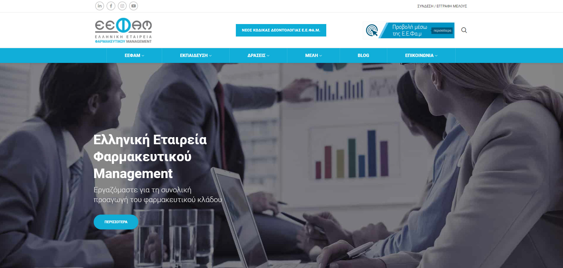 Υλοποίηση του site της Ελληνικής Εταιρείας Φαρμακευτικού Management σε WordPress με migration του content από Joomla. Δημιουργήθηκε κοινότητα μελών με πρόσβαση σε περιεχόμενο μόνο για μέλη καθώς και ηλεκτρονικές πληρωμές ανανέωσης μέλους. Η πλούσια και καθημερινή αρθρογραφία απαιτούσε την δημιουργία συστήματος αποστολής newsletter με αυτοματοποίηση λειτουργιών, όπου σχεδιάσαμε templates και κάναμε optimized τον server για να μπορεί να ανταποκριθεί στο καθημερινό traffic.