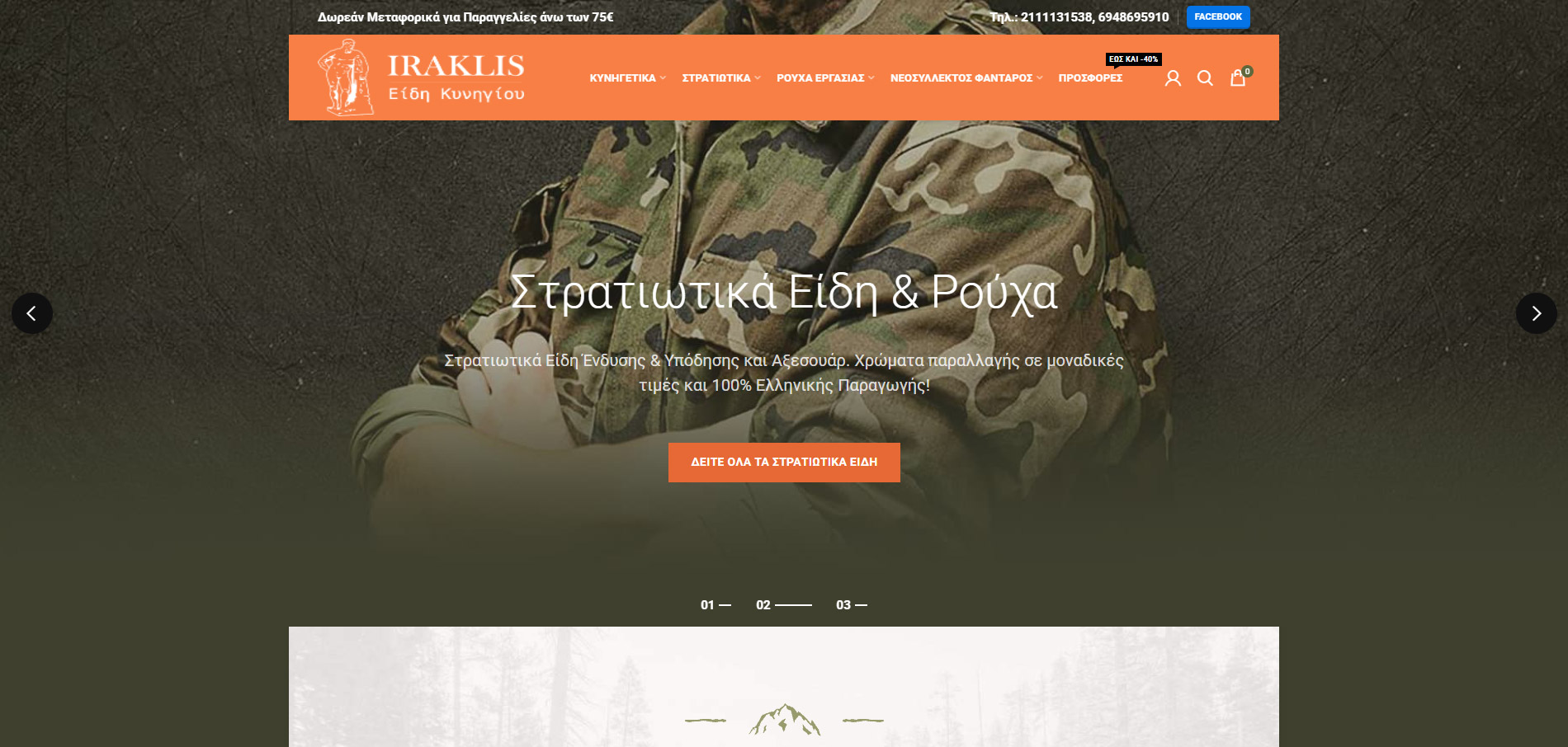 H εταιρεία Iraklis Outdoor, βρίσκεται από το 1975, στην αγορά των ειδών κυνηγίου. Διαθέτει την κατάλληλη εμπειρία για να σας εξυπηρετήσει παρέχοντας μια ευρεία γκάμα κυνηγετικών, στρατιωτικων και εργατικών προϊόντων που καλύπτουν όλες τις ανάγκες.