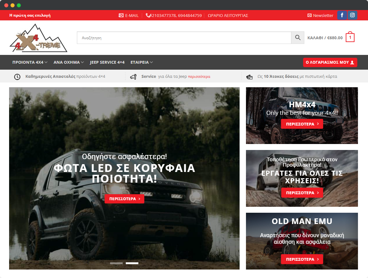 H Xtreme4x4 δραστηριοποιείται στον εξοπλισμό τετρακίνητων οχημάτων με απόλυτο κριτήριο τις ανάγκες των ιδιοκτητών τους και την χρήση για την οποία τα προορίζουν.